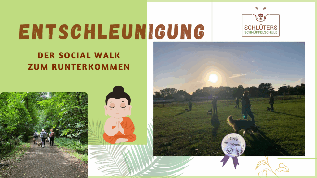 Beim Thema „Entschleunigung“ geht es nicht immer darum, sich langsam zu bewegen. Es geht vielmehr darum, unser Bewusstsein zu schärfen für Reizverarbeitungen. Wir schauen, wie lange unsere Hunde für welche Reize brauchen würden bzw. was sie gerade so beschäftigt. Und auch, was es mit uns macht. Wir werden ihnen aber auch die Gelegenheit geben, mit einer Seelenruhe was Interessantes anzuschauen und sich wie eine Schnecke millimeterweise darauf zu zubewegen. Mal genussvoll alles wahrzunehmen. Mit uns zusammen dorthin zu pirschen.